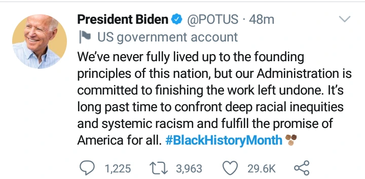 President Joe Biden fights racism as he supports black history month in America